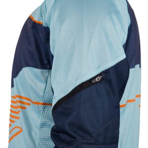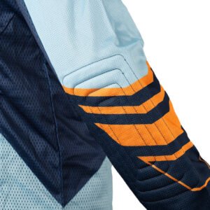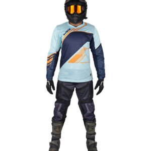 The Frontier Jersey’s design features bold and adventurous elements. Its striking patterns and rough-edged accents depict untamed terrains and wild adventures, encapsulating the spirit of motocross.