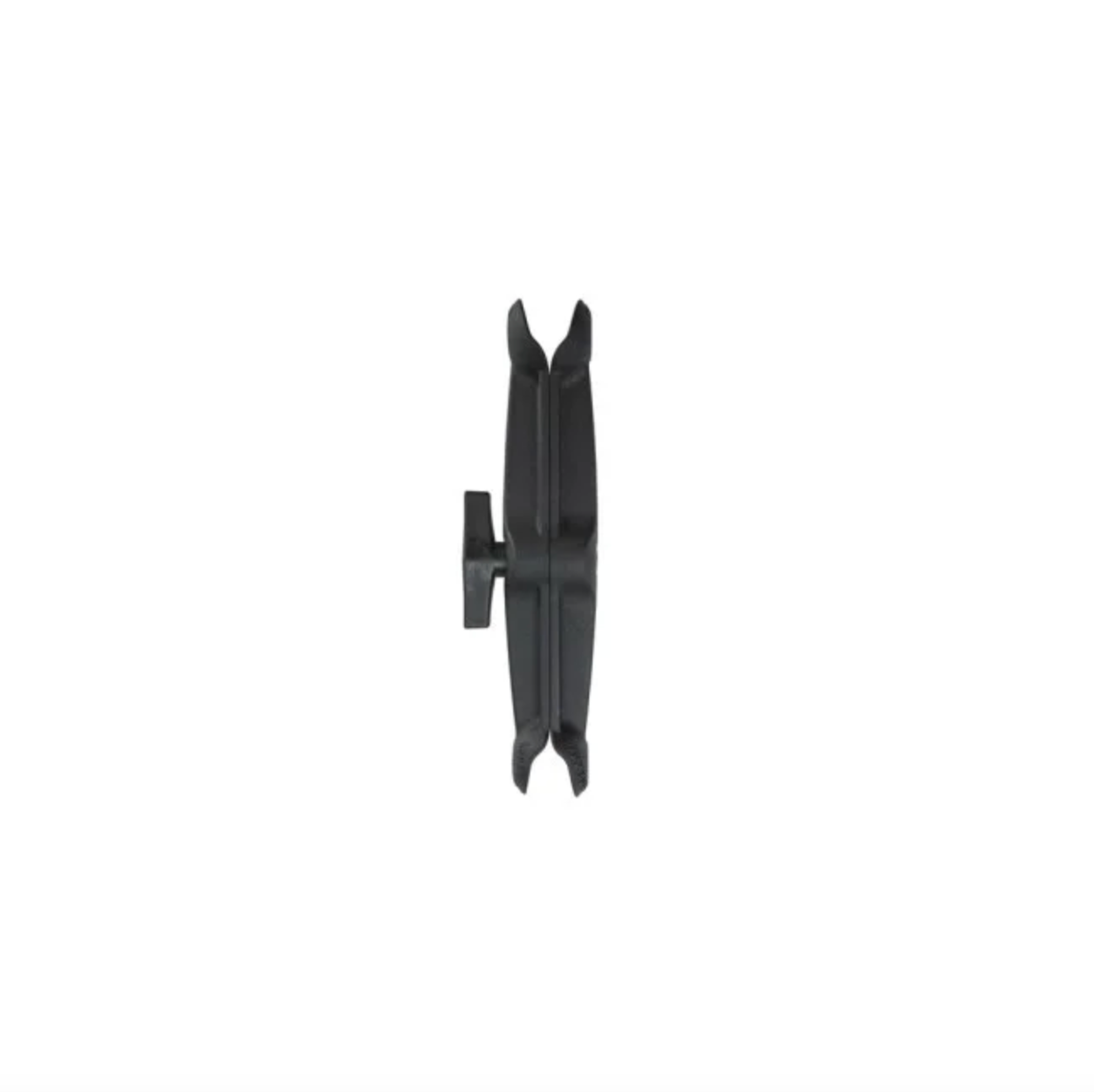 Asymmetrical Clamping. Because the ball diameters are different, the clamp is located off-center toward the mirror. The larger base diameter creates more stiffness at the bottom, and the offset clamp grips the mirror tighter to equalize rigidity.